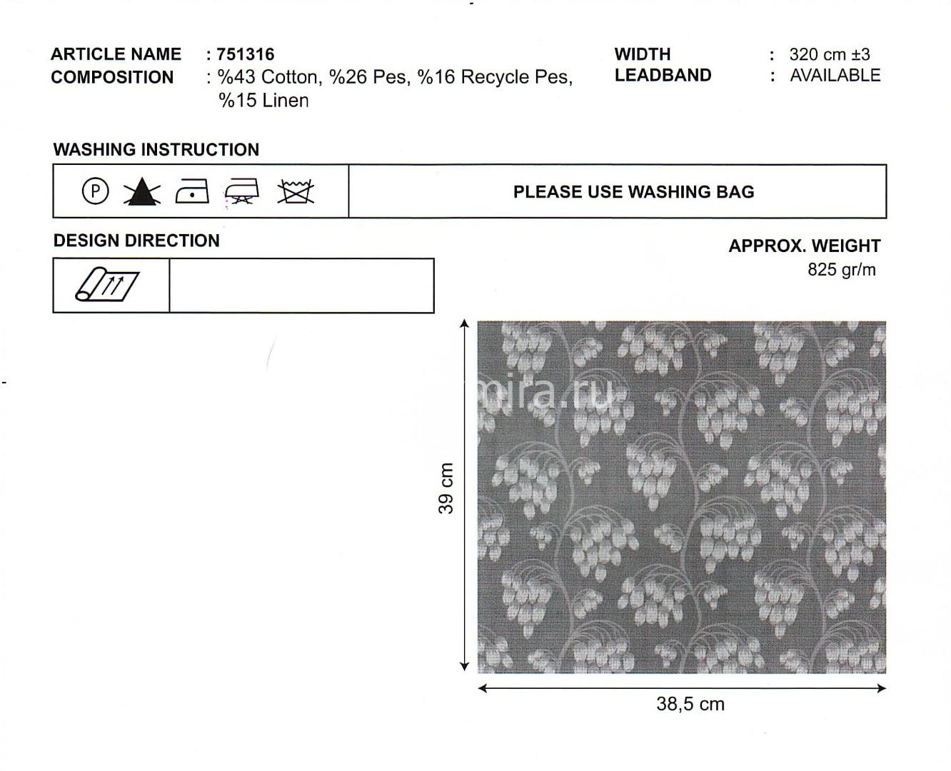 Ткани 751316-63002 изготовлены из высококачественных материалов по современным технологиям. Они отличаются прочностью, долговечностью и устойчивостью к выцветанию. Благодаря этому шторы из тканей 751316-63002 сохраняют привлекательный внешний вид на многие годы.