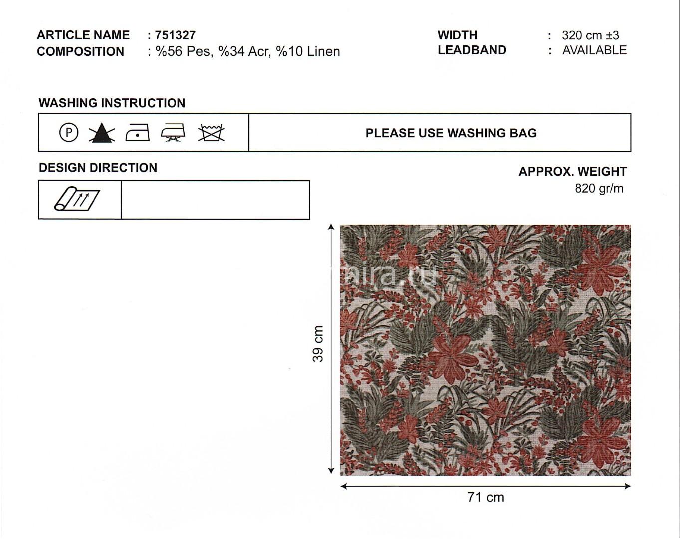 Высота ткани (+ - 5%): 320 см